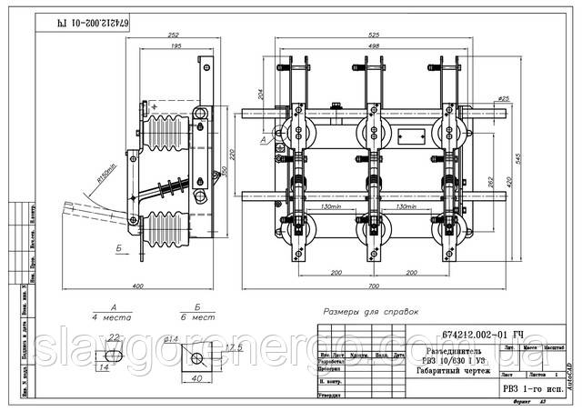 Роз'єднувачі РВЗ -10/400 (630) I - УХЛ2Роз'єднувачі РВЗ -10/400 (630) I - УХЛ2